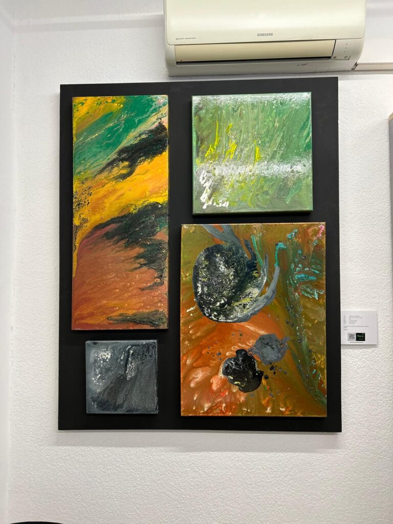 Trabajo con materiales diversos: madera, metal, cerámica, tela, resina, y pigmentos que uso también en mis obras de gran formato.